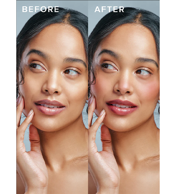 - Sur les joues : Tapotez une petite quantité sur les pommettes et estompez rapidement pour un effet bonne mine.
