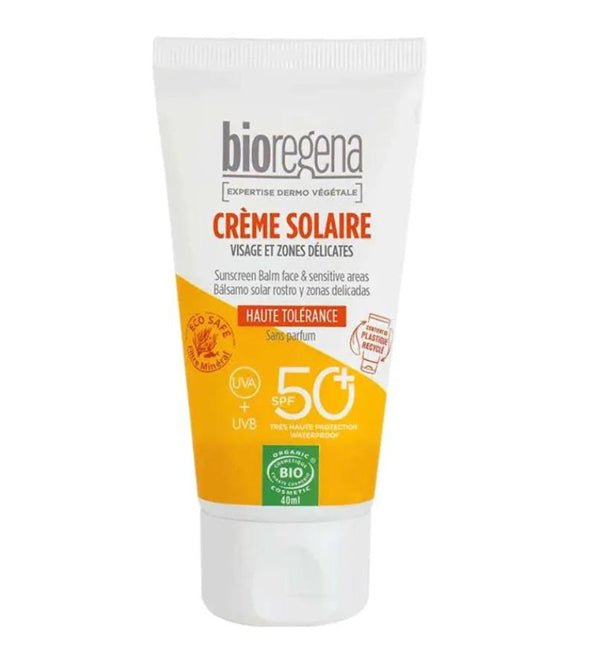 Offrez à votre peau une protection optimale avec notre Crème Solaire Bio SPF 50+ Bioregena, spécialement conçue pour protéger efficacement le visage, les zones sensibles et les peaux claires à très claires des rayons UV.