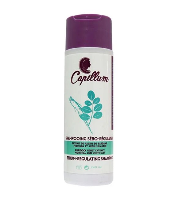 SHAMPOING CAPILLUM SEBO-REGULATEUR A base des acides de fruits naturels et biologiques (AHA), Argile blanche et Extrait de racine de Grande Bardane permettent d’exfolier le cuir chevelu et de retirer l’excès de sébum présent.