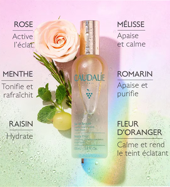 Produit culte de Caudalie, l’Eau de Beauté est une brume de soin 100% naturelle aux multiples propriétés. Elle révèle l’éclat du teint et resserre les pores tout en fixant le maquillage.