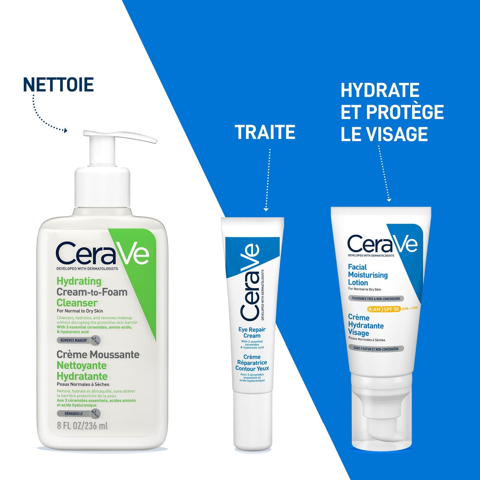 Développée avec des dermatologues, la Crème Réparatrice Contour des Yeux hydrate et aide à restaurer la barrière protectrice du contour des yeux. Une texture légère et fluide qui pénètre rapidement la peau.
