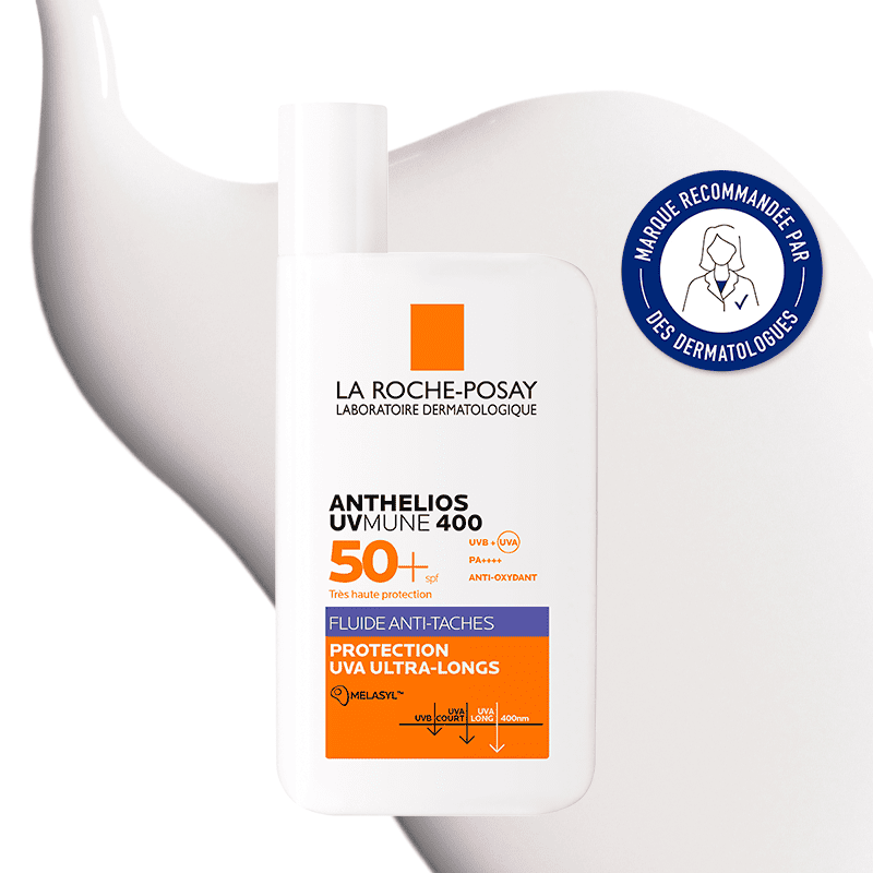 Anthelios UVMUNE 400 Fluide Anti-Taches SPF 50+ est un écran solaire haute protection qui aide à prévenir et à réduire les taches pigmentaires causées par les rayons UV.