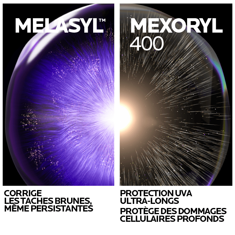 Ingrédients Clés : Mexoryl 400 pour protéger des UV longs (380–400nm) | Melasyl pour prévenir et réduire les taches pigmentaires.