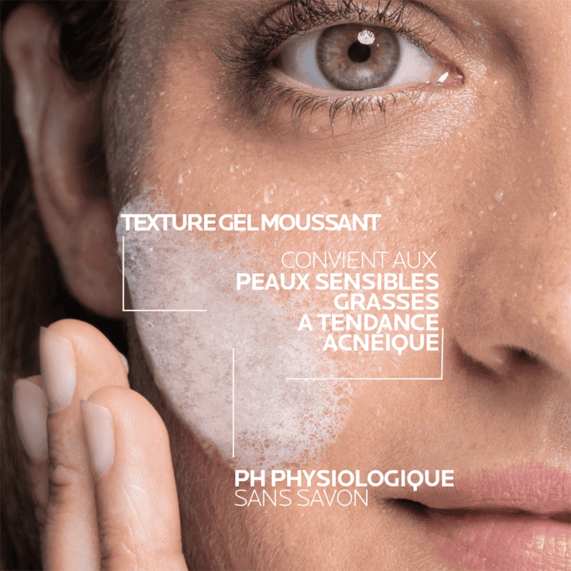 Le Gel Moussant nettoyant visage EFFACLAR purifie la peau en douceur et élimine les impuretés et l’excès de sébum grâce à des agents nettoyant sélectionnés pour respecter les peaux sensibles. Sa formule associée à l’Eau Thermale de La Roche-Posay apaisante limite les risques d’irritations.