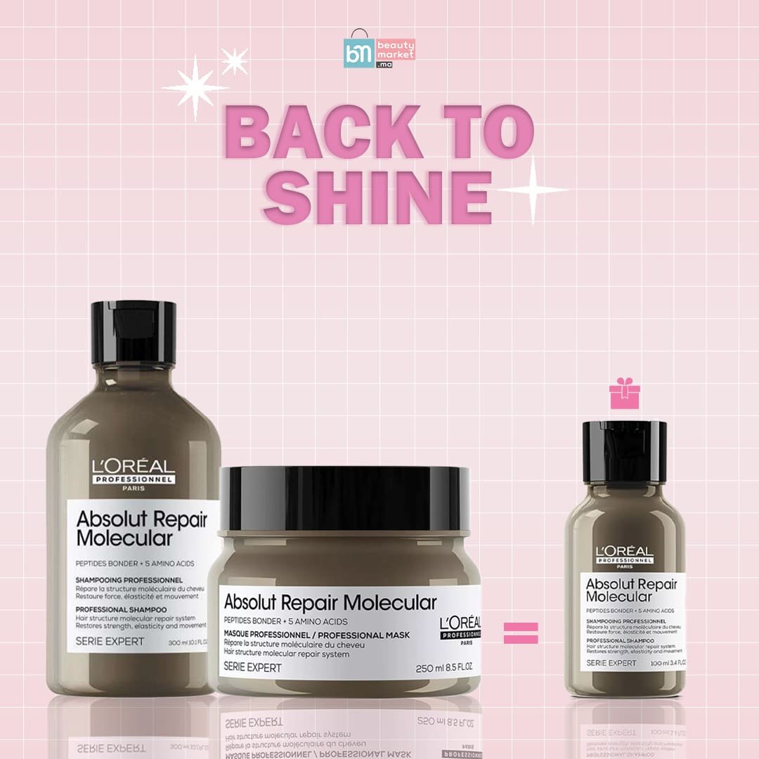 L’Oréal Professionnel absolut repair molecular shampooing 300 ml + Masque 250 ml = Shampo 100 Ml Offert