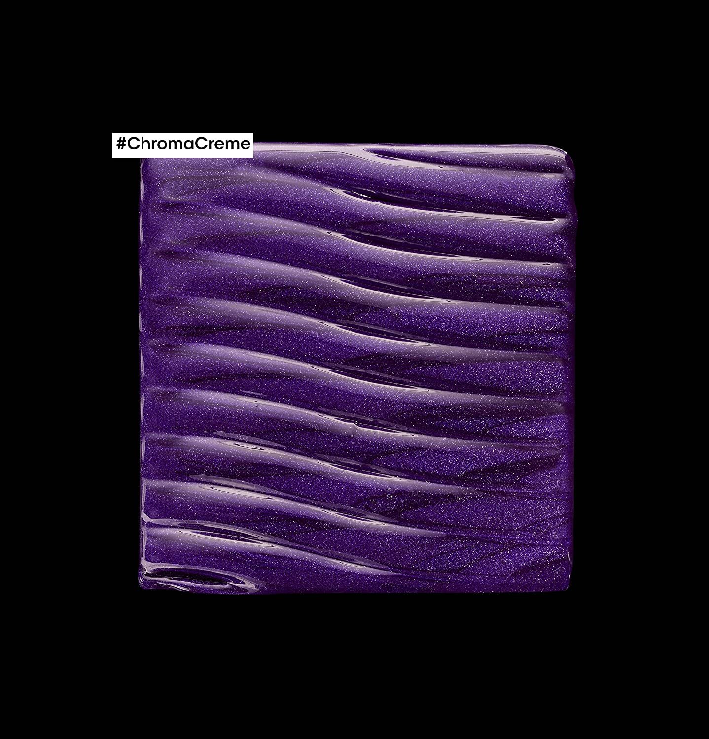 Le shampoing Chroma Crème Violet offre une neutralisation homogène grâce à un film de formule plus fin garantissant un résultat de couleur uniforme, même sur les zones poreuses. Il apporte également plus de brillance. Sa texture concentrée, crémeuse et moussante offre une expérience unique.