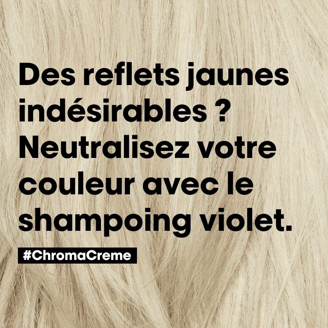 Avec le shampoing Chroma Crème Violet, neutralisez vos reflets jaunes indésirables et nourrissez intensément vos cheveux, comme un pro.