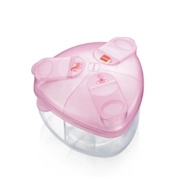 La boîte de lait en poudre est particulièrement légère et peut contenir jusqu’à trois portions de lait en poudre ou de lait maternisé. Grâce à sa forme triangulaire, le lait en poudre ou la formule peut être rempli facilement dans la bouteille sans laisser de résidu. Parfait pour les parents actifs et idéal pour les déplacements: