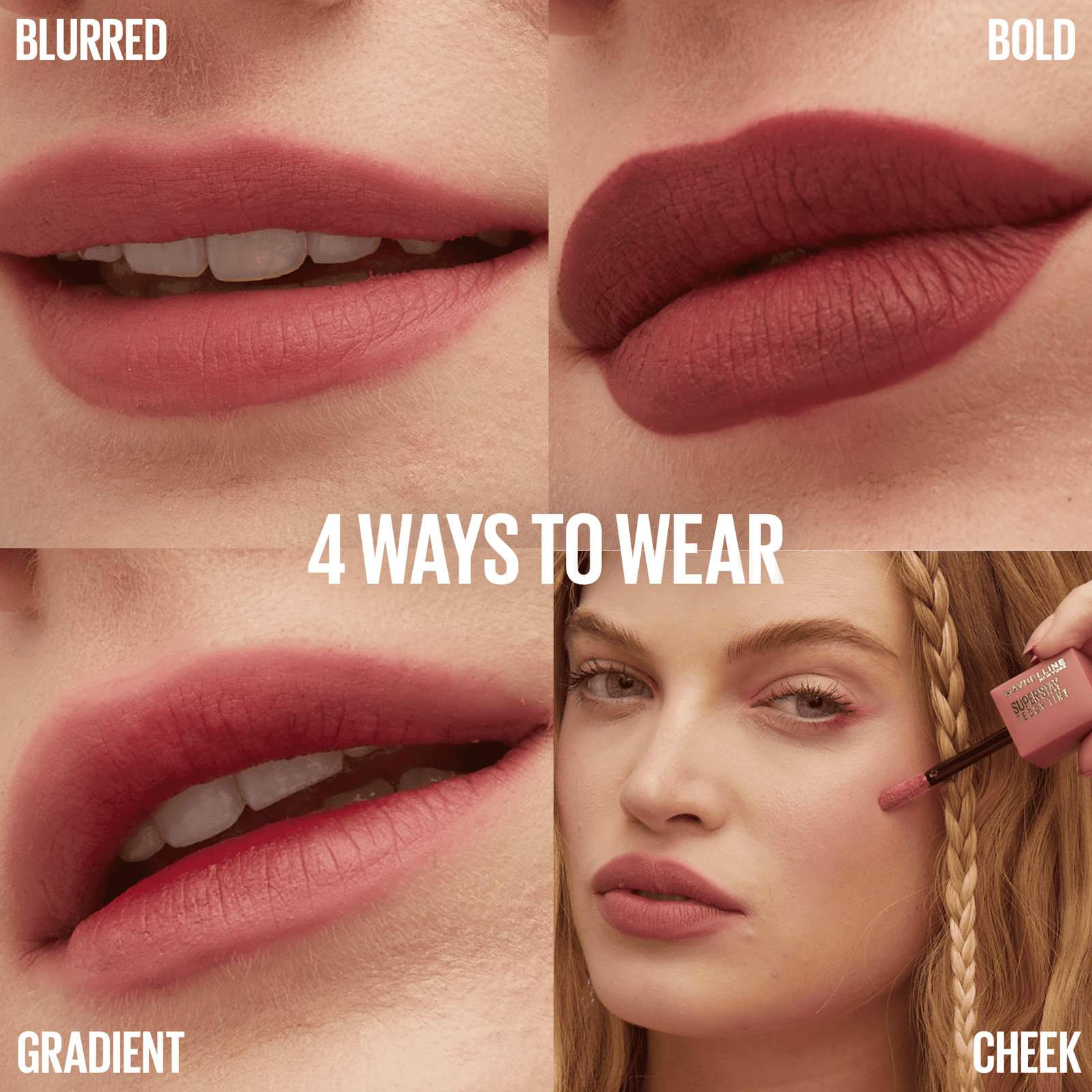 4 façons de le porter. Sur les lèvres effet flouté, en dégradé ou intense, et même en blush. *Test Consommateur sur 122 Personnes.