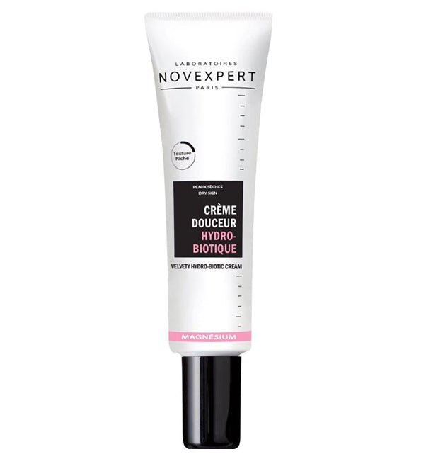 Novexpert Magnésium Crème Douceur Hydro-Biotique 30 ml est un soin 2en1 à la texture riche, ultra-nourrissant et ultra-apaisant pour les peaux sensibles :