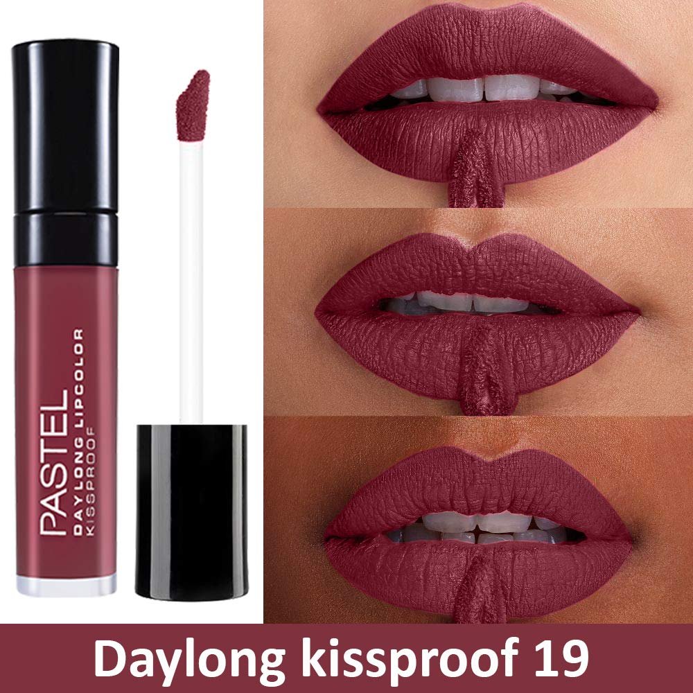 Optez pour une couleur intense et durable avec le rouge à lèvres liquide mat Daylong Lipcolor Kissproof de Pastel. Une formule innovante pour un fini impeccable, toute la journée.