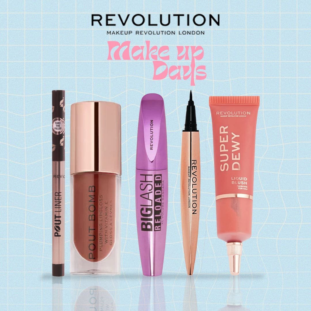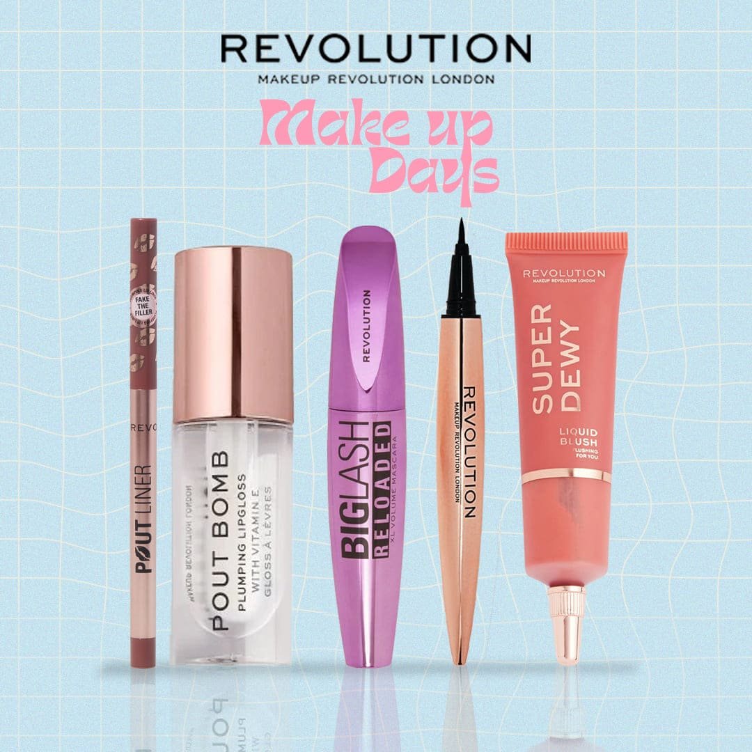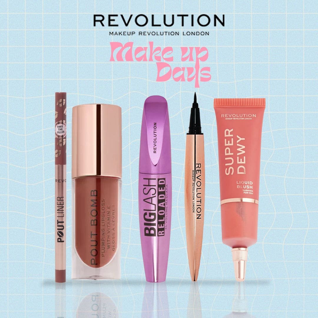 HomeShopUncategorizedREVOLUTION PACK FULL FACE LIPLINER + GLOSS + EYELINER + MASCARA + BLUSH = MATTE BOMB OFFERTE
