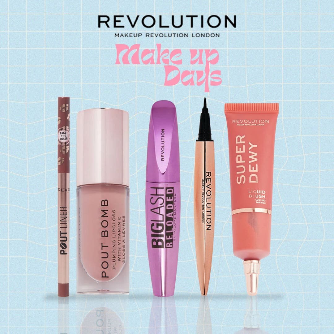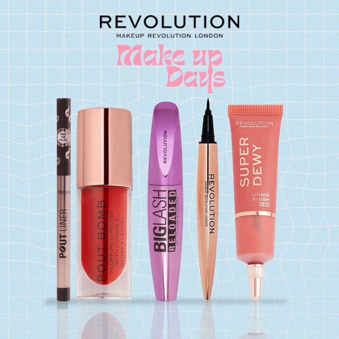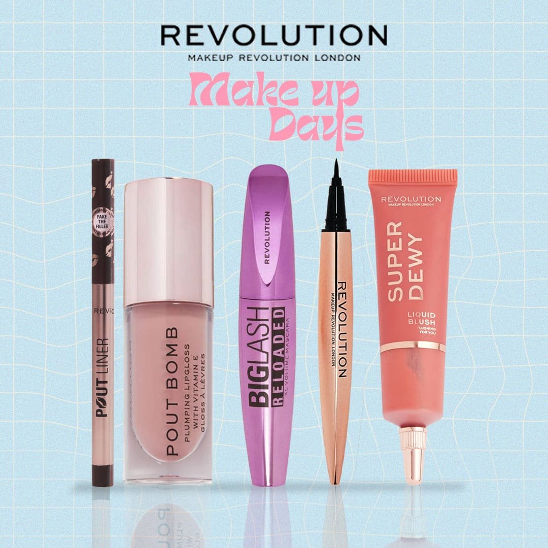HomeShopUncategorizedREVOLUTION PACK FULL FACE LIPLINER + GLOSS + EYELINER + MASCARA + BLUSH = MATTE BOMB OFFERTE