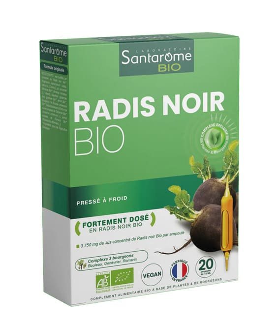 ARTICHAUT BIO RADIS NOIR BIO est composé de 2 plantes et 3 bourgeons Bio rigoureusement sélectionnés. L’Artichaut Bio, à haute concentration : 2500 mg* par ampoule, aide à maintenir le bon fonctionnement du foie.