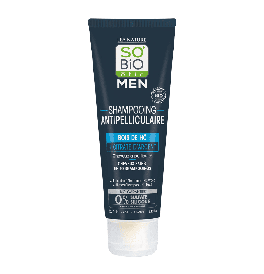 Découvrez le Shampooing Antipelliculaire Homme au Bois de Hô Bio de So’Bio Étic, la solution idéale pour lutter contre les pellicules tout en respectant votre cuir chevelu. Grâce à une formule douce, sans sulfates, enrichie en Bois de Hô Bio et en citrate d’argent, ce shampooing purifie et assainit en profondeur, éliminant les pellicules les plus tenaces sans agresser le cuir chevelu. Il apaise les irritations et réduit les démangeaisons, pour un confort durable et une sensation de fraîcheur incomparable.