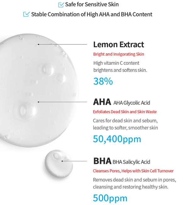 Toner Citron AHA BHA : Exfolie en douceur, élimine les cellules mortes et améliore le teint pour une peau claire.
