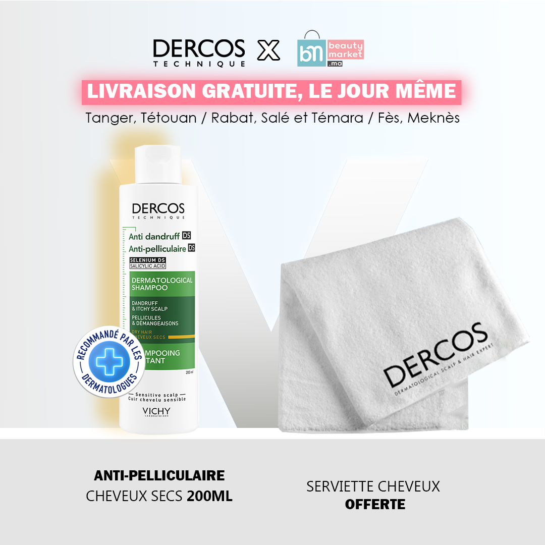 Vichy dercos shampooing antipelliculaire cheveux secs 200 ml = Serviette OFFERTE