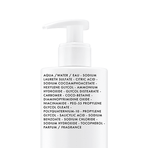 AQUA / WATER – SODIUM LAURETH SULFATE – CITRIC ACID – DISODIUM COCOAMPHODIACETATE – GLYCOL DISTEARATE – AMMONIUM HYDROXIDE – CARBOMER – DIAMINOPYRIMIDINE OXIDE – DISODIUM RICINOLEAMIDO MEA-SULFOSUCCINATE – HEXYLENE GLYCOL – NIACINAMIDE – PANTHENOL – PEG-55 PROPYLENE GLYCOL OLEATE – POLYQUATERNIUM-10 – PROPYLENE GLYCOL – PYRIDOXINE HCl – SALICYLIC ACID – SODIUM BENZOATE – SODIUM CHLORIDE – SODIUM HYDROXIDE – PARFUM / FRAGRANCE