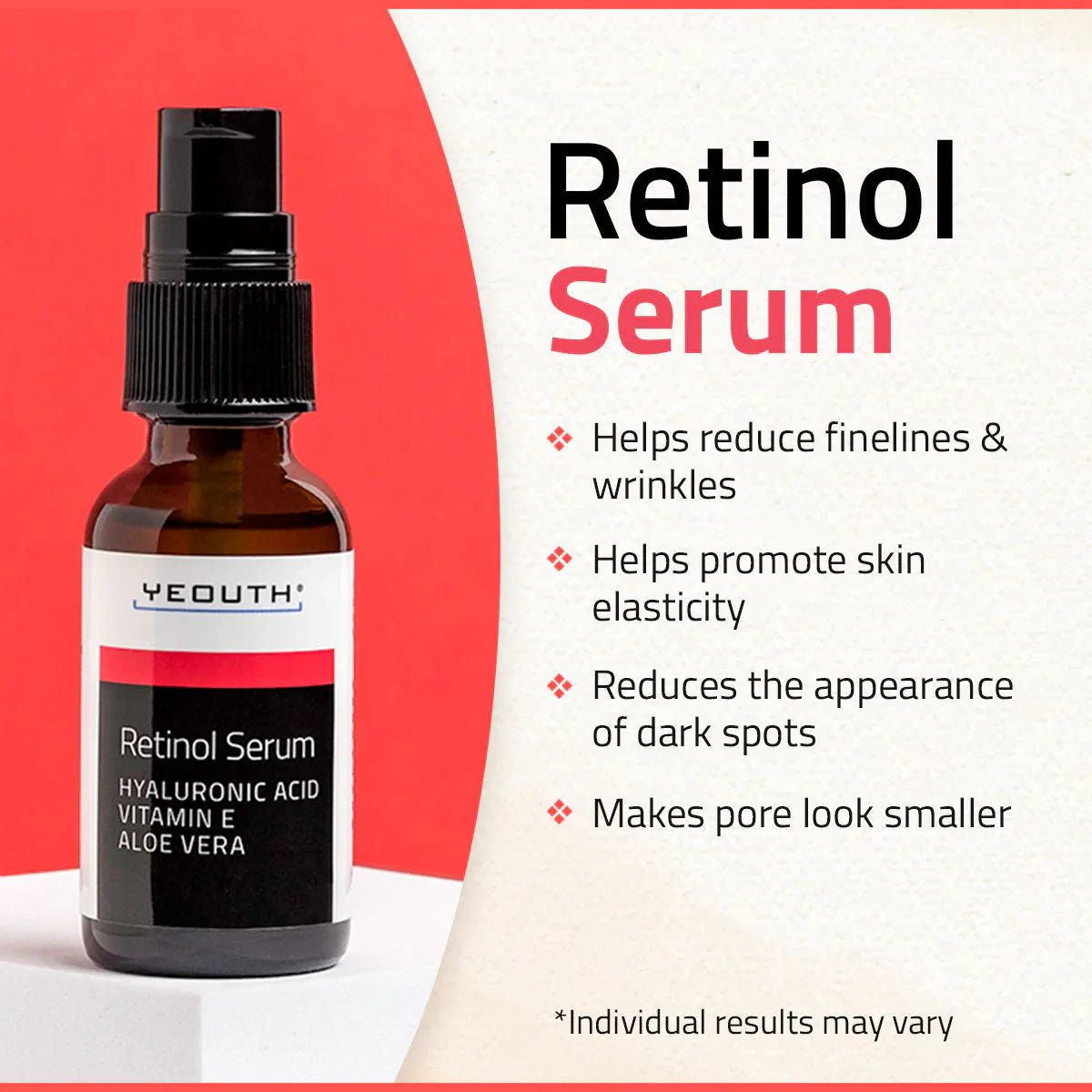 Le sérum YEOUTH au rétinol pour le visage est un sérum anti-rides qui offre des résultats visiblement spectaculaires tout en hydratant et en éclaircissant la peau en même temps. Pensez à des lignes, rides et pores plus lisses et moins visibles avec ce sérum pour le visage au rétinol!